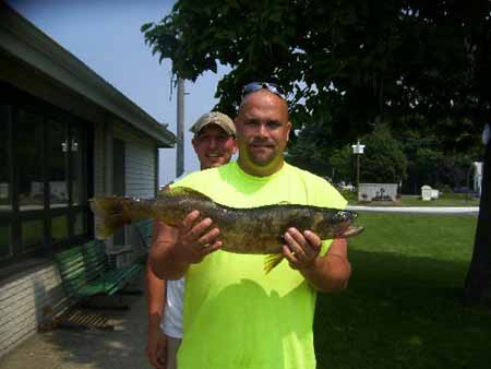 Daniel Mayer of New Brighton, Pa brought in for Angler Award this 8 lb. 2 oz. Walleye. It was 29 ¼ inches long and had a girth of 16 inches. He caught his out in 69 ft of water West of Elk Creek near the line on worm harness. His color was Green and Gold.