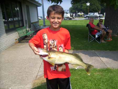 Nine year old Jake Kowcheck brought in this 6 lb 5 ½ oz. Walleye for Angler Award. It was 25 ¼ inches long and had a girth of 15 inches. He caught it out in 69 ft of water this side of the Ohio line on a worm harness. His color was Lime Green.