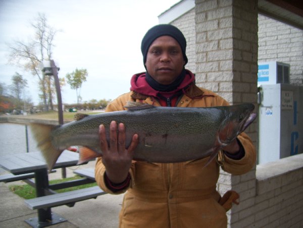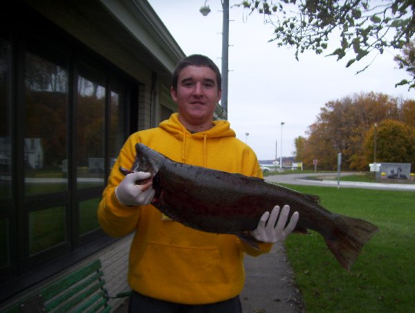 Jessie Weaver of Erie Pa caught a 10 pound 3 ½ inches Steelhead. It was 30 inches long and had a 16 inch girth. He caught it in one of the holes at the Project Waters in Walnut Creek. He was using a Fly.